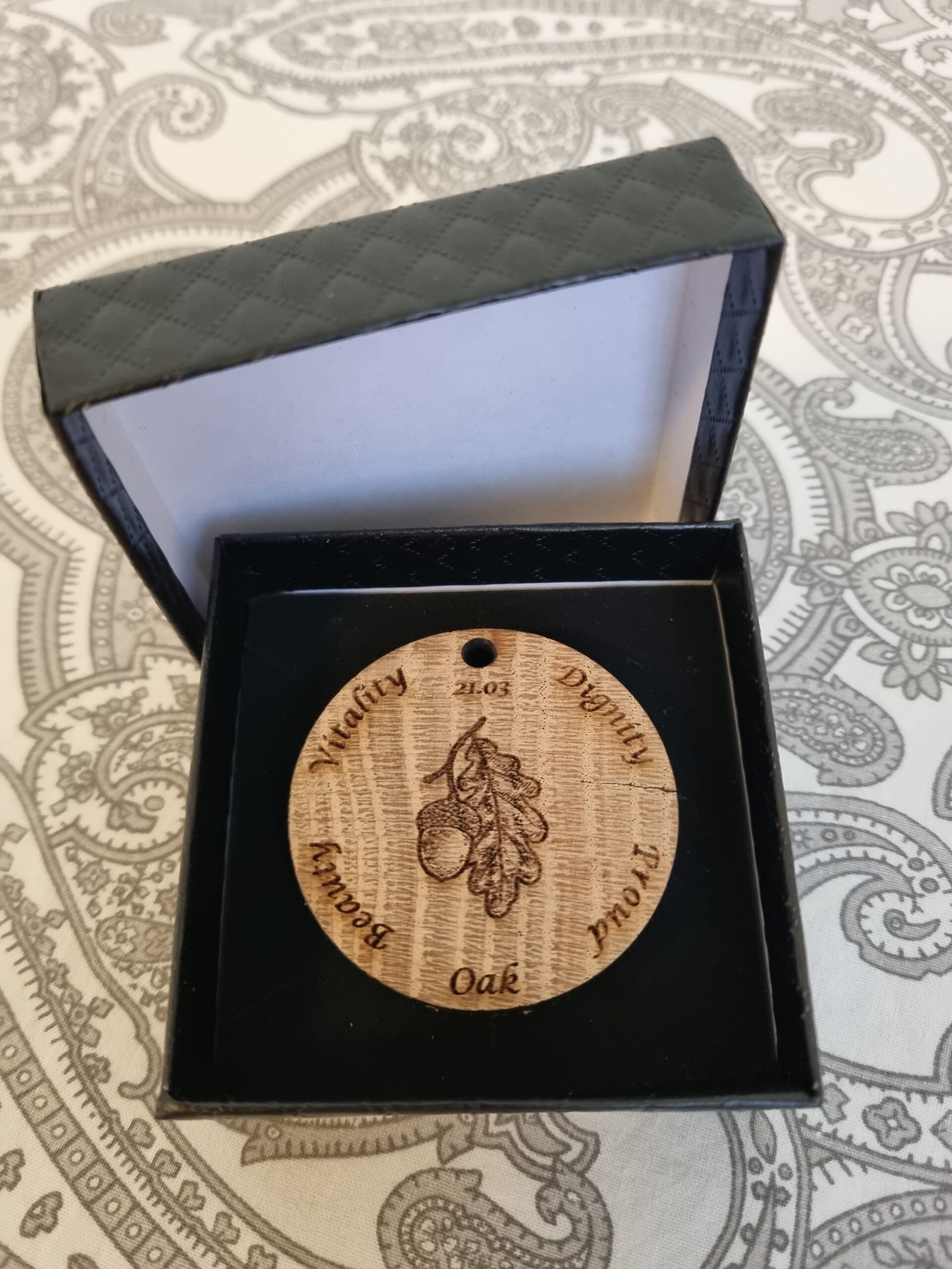 Beautifully crafted Druid Horoscope talisman from Oak.